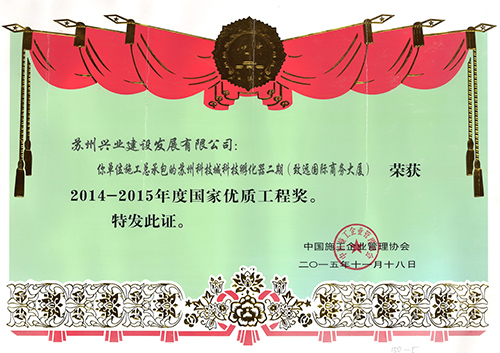 公司获得7项鲁班奖、7项国家优质工程、11项AAA级安全文明标准化诚信工地以及国家级新技术应用示范工程、全国建筑业绿色施工示范工程、中国安装之星、中国钢结构金奖等诸多国家级奖项,集团主编/参编各类规范、标准、规程5项;国家发明、实用新型、外观设计专利77项;国家级工法5项。荣获全国五一劳动奖状、全国建筑业先进企业、中国建筑业企业竞争力百强企业、全国建筑业AAA级信用企业、全国“守信用重合同”企业、全国建筑业质量管理优秀企业、全国质量效益型先进企业、全国“安康杯”优胜企业、全国模范职工之家、全国工人先锋号等多项全国性荣誉;被江苏省人民政府评为江苏省先进建筑业企业、江苏省建筑业优秀企业;荣获江苏省科技进步三等奖、江苏省建筑业科技成果二等奖;江苏省建设科技先进集体、江苏省建筑业最佳企业、江苏省建筑业综合实力50强、江苏省文明单位等多项荣誉称号。集团公司董事长、党委书记、总经理韩伟被评为江苏省建设系统劳动模范。