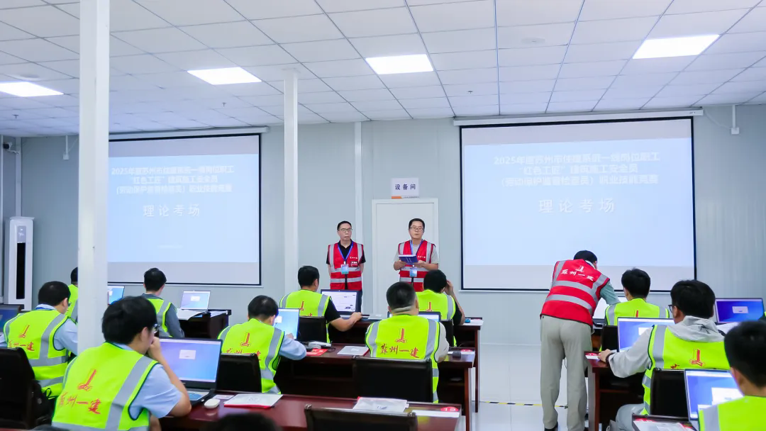 近期,“苏超”盛况实力霸屏,专注进取热力出圈。时值全国第24个安全生产月,一场建筑行业安全员版“苏超”——“2025年度苏州市住建系统一线岗位职工'红色工匠'建筑施工安全员(劳动保护监督检查员)职业技能竞赛”于27日在苏州一建火热开赛。