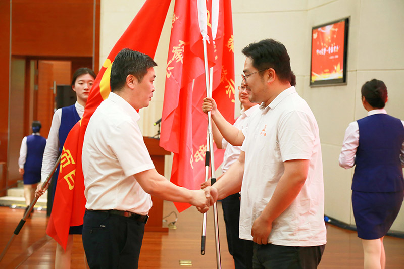 集团党委书记、董事长韩伟为第三批“红色先锋示范项目部”授旗